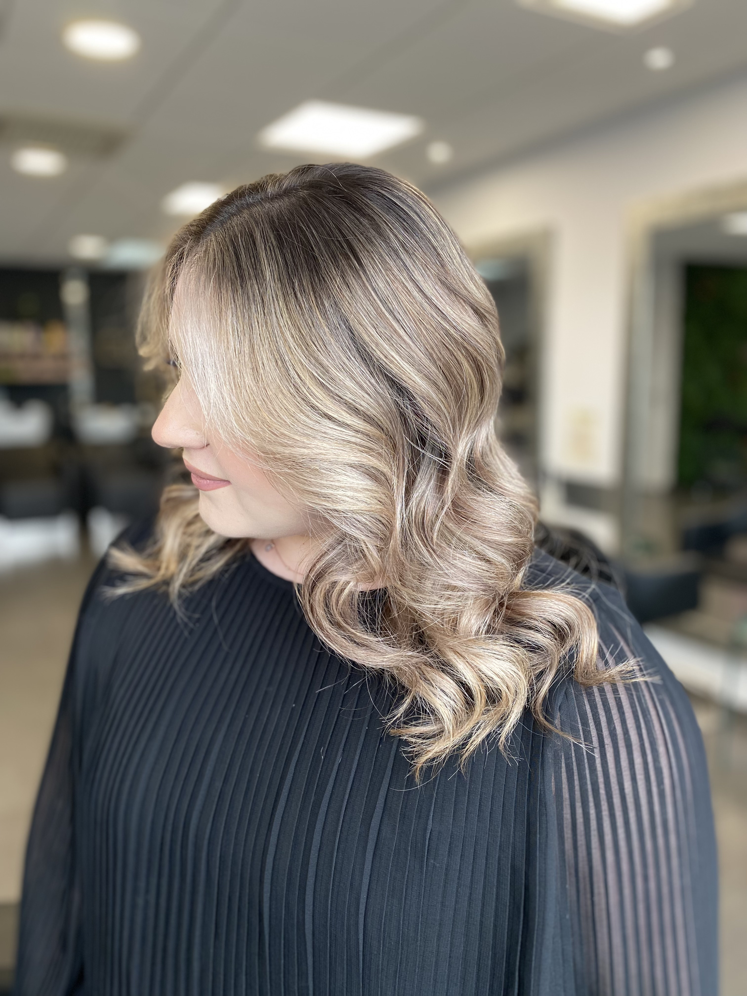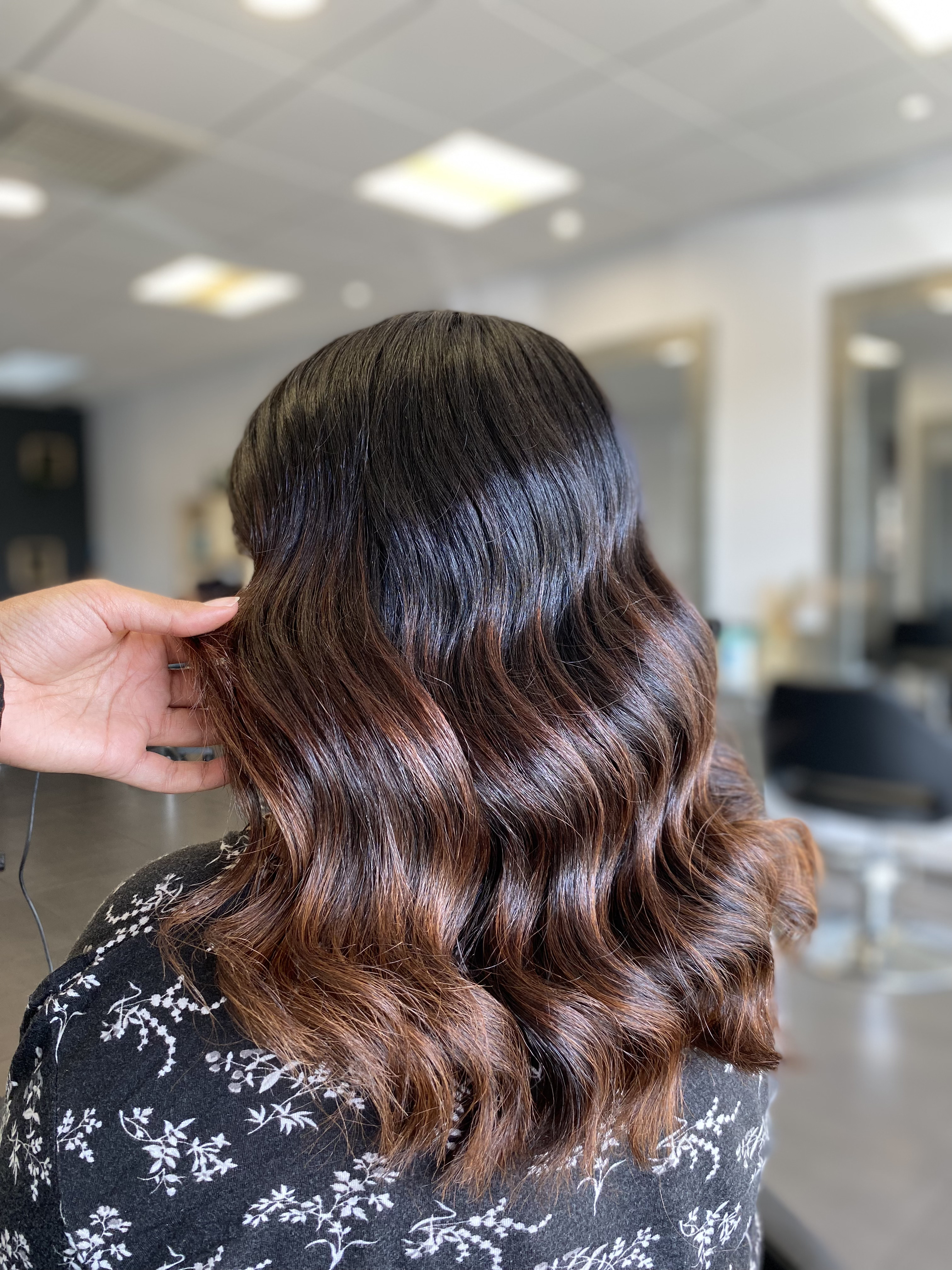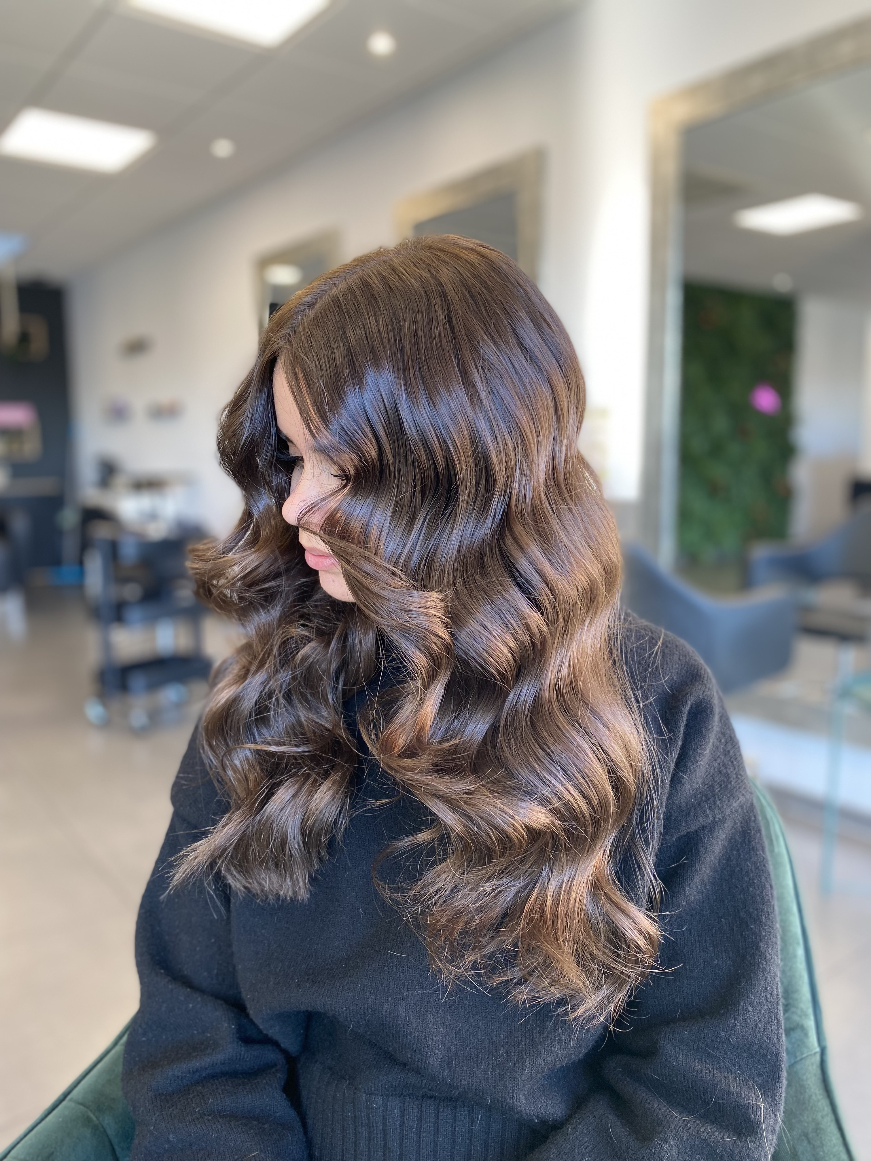 Que ce soit pour camoufler les cheveux blancs, raviver l’éclat naturel ou opter pour une teinte plus audacieuse, notre forfait coloration s’adapte à vos envies..